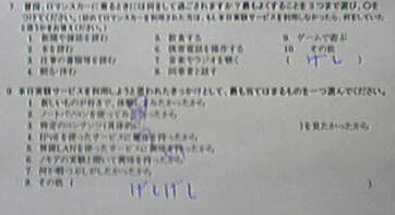 小椋「おとなりのイ吏 彳走も『Proxy Authentication Requied』エラーを乱発してましたな。新宿から町田までたった28分、駅到着10分前には返せっていうし、アンケートには協力しろというし、前の席のおばやんがスタッフに『ちょっと、それ貸してよ....あら使い方がわからないわ、ちゃんと説明しなさいよ』とかいってこっちに中々機械が回ってこないし....結構忙しい未来体験でした」