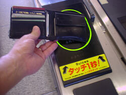 小椋「いえいえ、うちの近所なんかひどいもんですよ。あれってカード側のソレノイドに磁力線を通して発電、改札機の方に電波を飛ばす....って仕組みでしたよね。でも改札機が古いと感度が悪いようですね。おかげで今朝出てきたらこんなステッカーが」