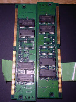 木下「だがとあるHPでは前チップ2つで1MBのSIMMが紹介されてましたから、容量的には若干言迷ですが」 小椋「とりあえずはつけてみましょう」 ![]() 木下「....やはり切り欠きは合いませんな」 小椋「しょうがない、またふぁいばーぞげぞげです」 木下「思いっきしパターンが近傍走ってるんですけど」 ![]() 小椋「ふう、何とか無事でした」 木下「なんかまだハマりがキツイような気がするんですが」 小椋「まあ大丈夫でしょう、早速電源を入れてみましょう」