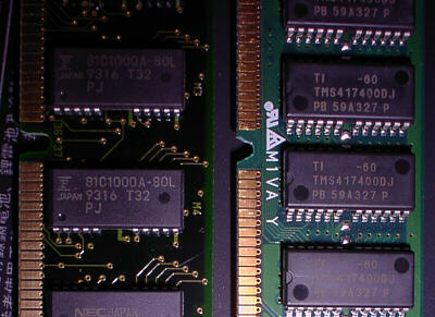 小椋「相変わらず重宝なお店です。しかしながらこっちに出てるパリ有りのは\1,000ですからいい商売してます。私はとっぷぺーじの方の山からようやく一組みだけ発掘しましたからよかったものの、あやうく本体より高いメモリを逝くところでした。価格差20倍では比較にもなりません」 木下「それでも逝ってしまう貴方ではありますが」 小椋「さ、さて....表側にTIのTMS417400DJ-60が8つ、そして....」