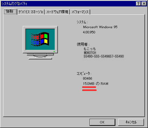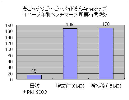 小椋「問題なしっ。555BJで16MB増設したイ吏 彳走もこれはブッ飛ばしたって言ってましたし、『POST』画面はESCキーでする〜です....」 ![]() 小椋「ハイごらんのとおり、ちゃんと15MB認識しました。まあアドレスバスが386SX相当なんだから3MBぐらいは大目に見ることにしましょう」 木下「しかしいまどきThinkPad550BJのメモリ増設なんかする人がいますかねぇ」 小椋「本体が二束三文状態の今日だからこそ有りうるのです。その劇的な効果を実感していただくためにBJ最大の特徴である印刷機能でベンチを取っておきましょう」 ![]() 木下「....遅くなってます」 小椋「あ、あり....?」 木下「まあまあ、そうがっかりなさることも無いですよ。どうせ母艦(Atlon1GHz+PM-900C on USB)に比べたら患いついた蝸牛同士の駆けっこみたいなもんですし」 小椋「お、おかしいなぁ、体感速度は確実に上がっているのですが....よーし今度は実家から387こぷろを持ってきて試してみるということで、次回にご期待あれ〜」 木下「......(まだ続くんかい)......」 |