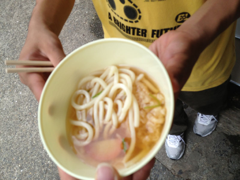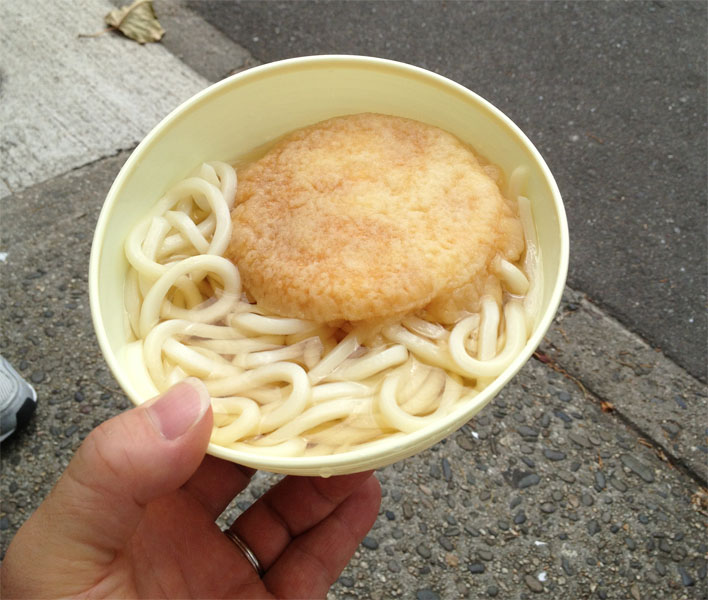 小椋「見てくれはまさに『ぶっかけうどん』ですな。天ぷら...ちうか巨大天かす円盤以外は具なしですか」