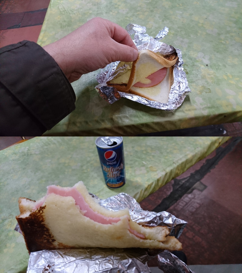 小椋「もっとパサッとしたモノを想像していたのですが、パン断面中央部まで、それも全体にまんべんなくマーガリンが含浸されていて、パン付きのマーガリンを食ってるみたいです。これはDJオイリーさんも大喜び『脂ギットリ確かな満足』です」