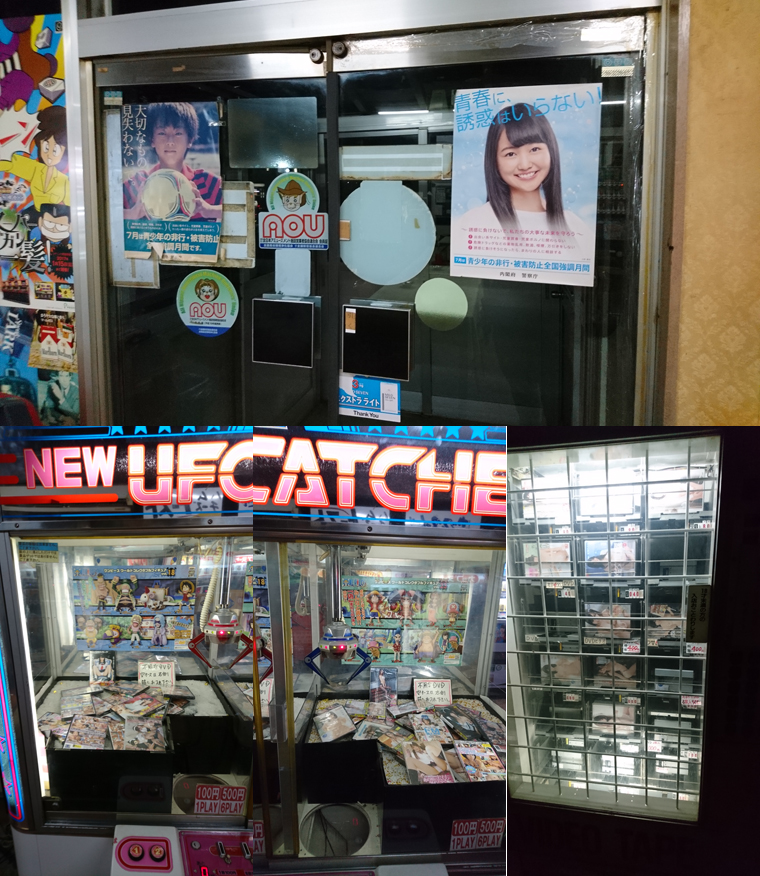 木下「え、えとー....他の方のレポによれば、昼間のクレーンプライズはフィギュアやぬいぐるみが入っているそうです。あの番組に出ていたおにいさんが朝夕に取り替えている模様。『要らないDVDケースは横のハコに入れてください』とのボードはそのまんまのようですが」