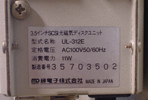 | 諸元 | SCSI-2接続 8x 書き込み/20x 読み出し |